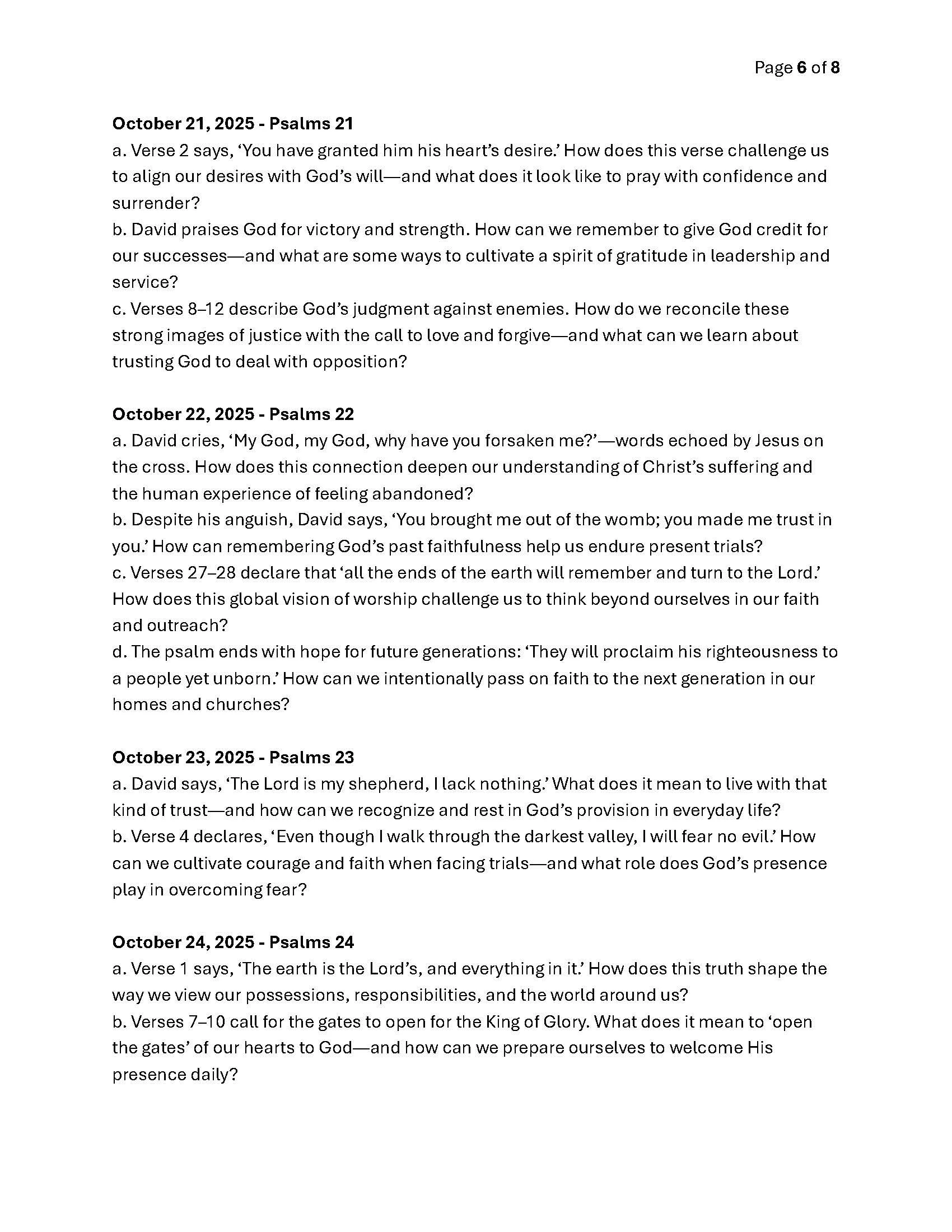 October 2025 Bible Scriptures and Questions