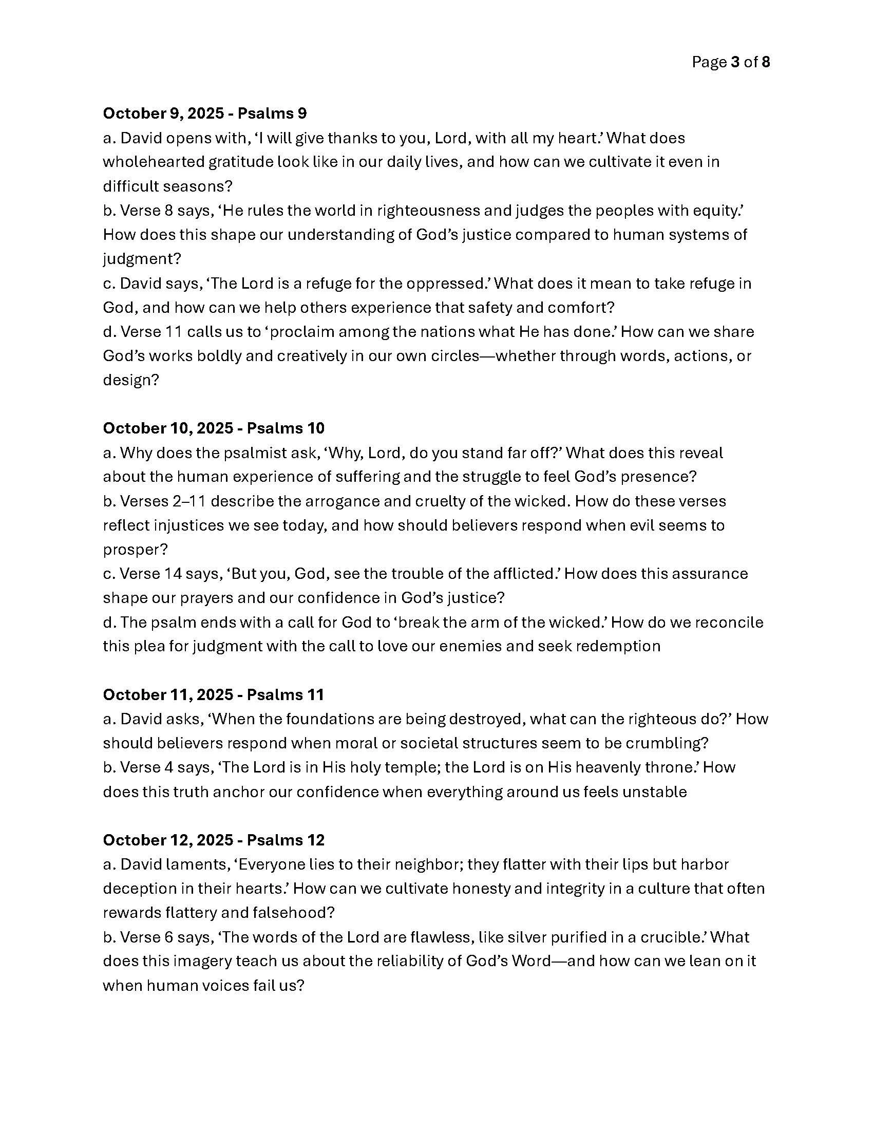 October 2025 Bible Scriptures and Questions