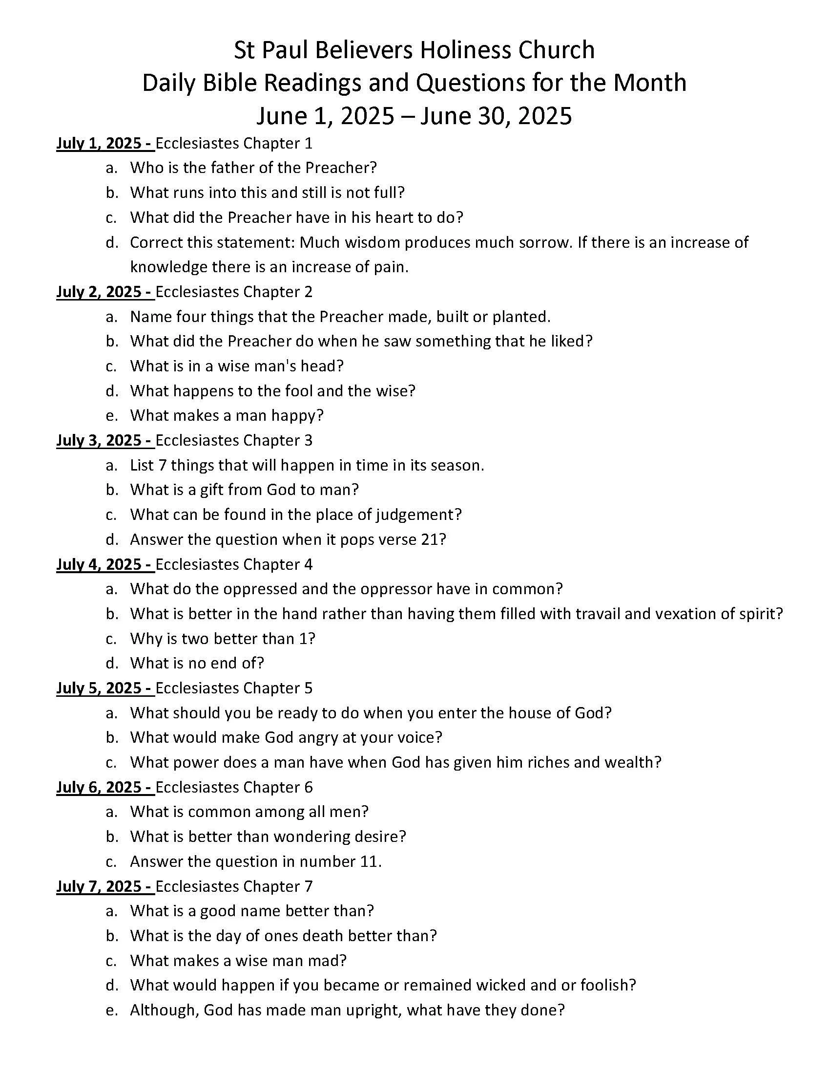 Daily Bible Reading and Questions