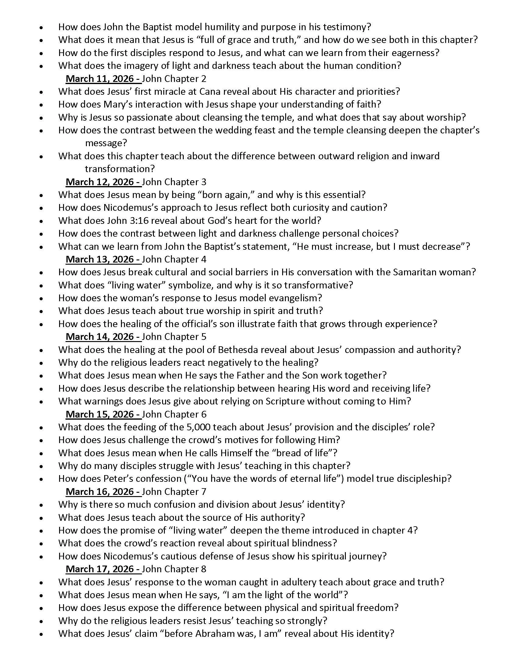 St Paul Believers Holiness Church Daily Bible Readings and Questions for the Month March 1, 2026 – March 31, 2026 Tuesday, March 10, 2026 6:30 PM 18:30 Tuesday, March 17, 2026 7:30 PM 19:30 Google Calendar ICS
